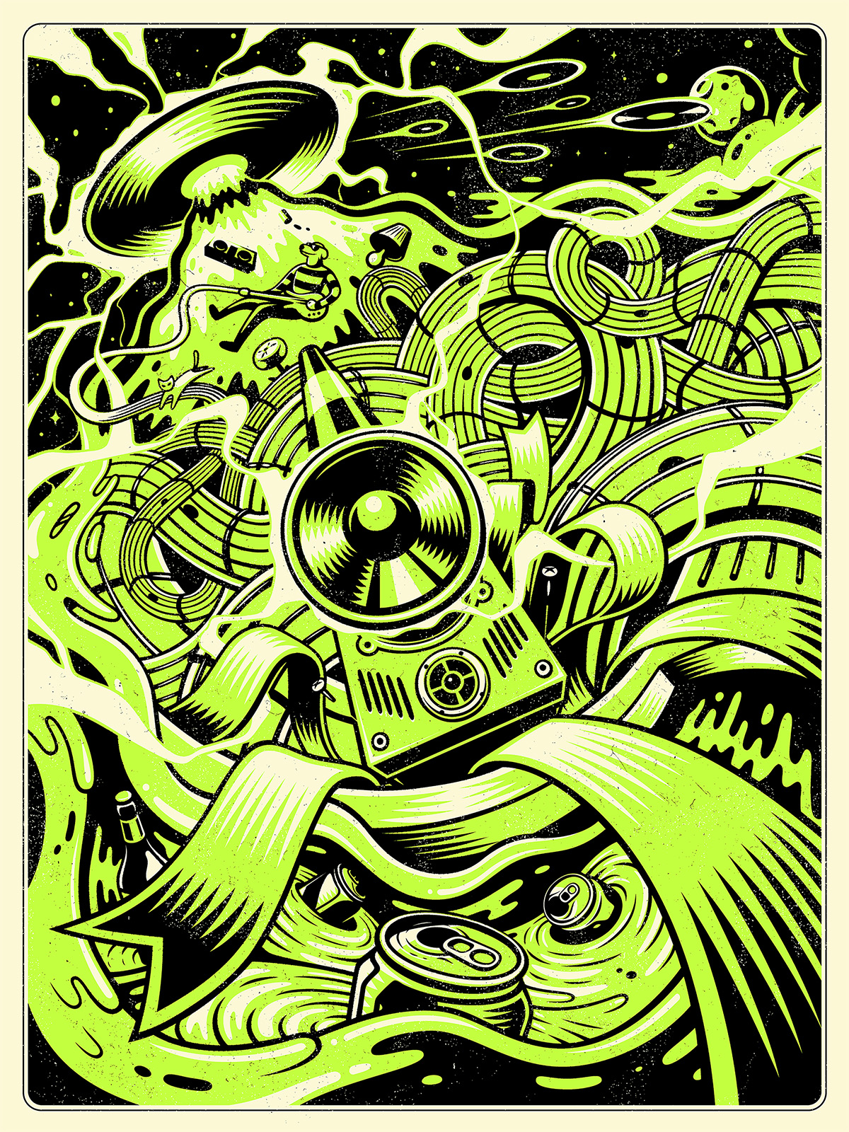 An illustration originally made as a submission for Pabst Blue Ribbon’s 2019 Sound Society