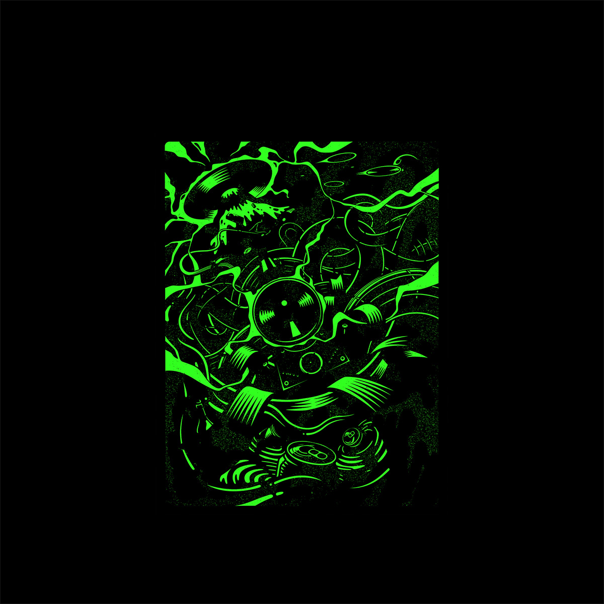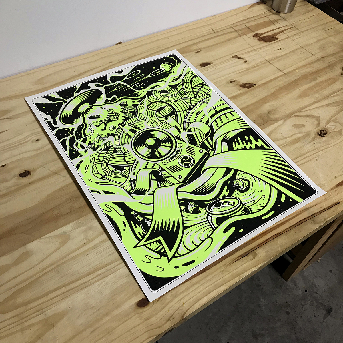 100 lb Cougar stock; printed with fluorescent and phosphorescent inks. Numbered edition of 50.